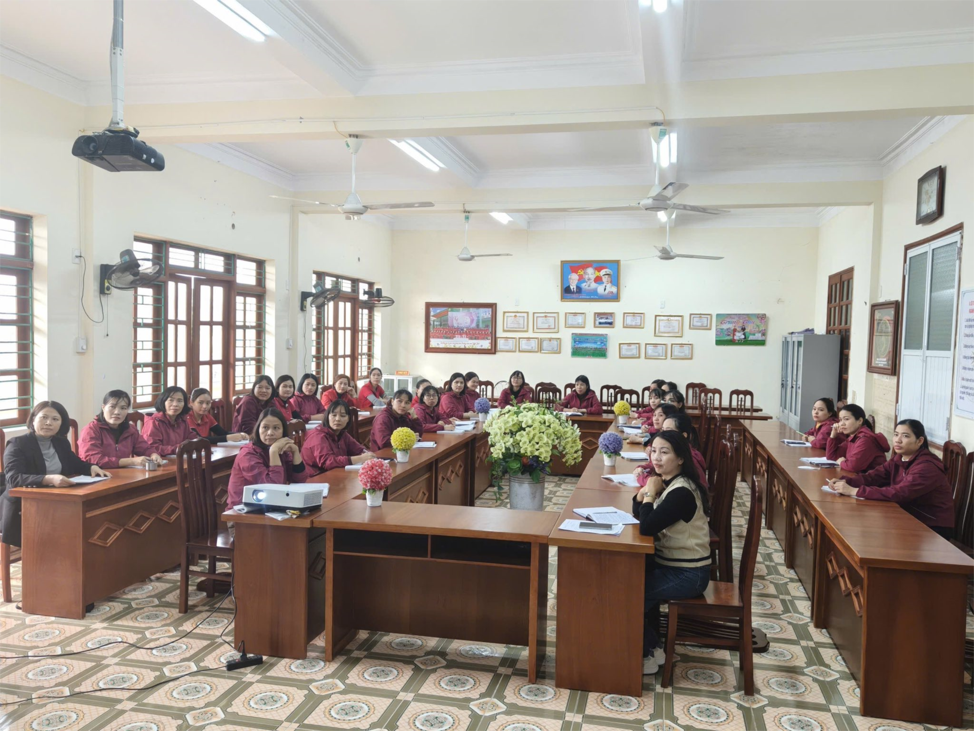 Tại điểm cầu nhà trường, không khí làm việc diễn ra hết sức khẩn trương và tập trung. Dù bận rộn với công tác chăm sóc, giáo dục trẻ, toàn bộ 39/39 Đảng viên của nhà trường đã sắp xếp công việc khoa học để tham dự đầy đủ.