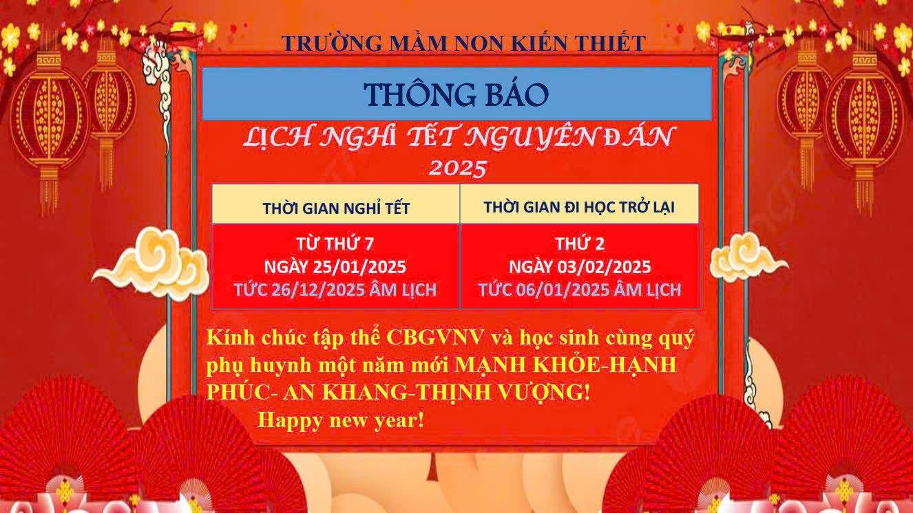 THÔNG BÁO NGHỈ TẾT NGUYÊN ĐÁN 2025