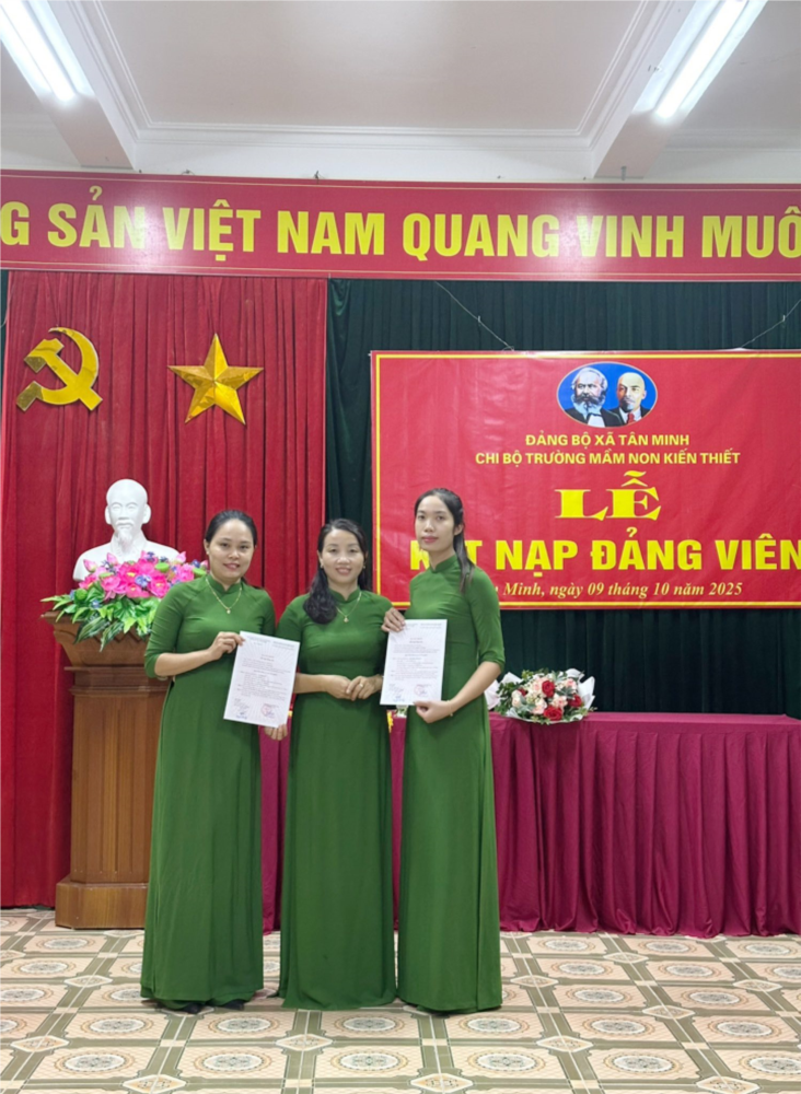 Ngày 9/10/2025 Chi bộ trường Mầm non Kiến Thiết long trọng tổ chức “Lễ kết nạp Đảng viên” quần chúng ưu tú: Nguyễn Thị Thuỷ và đ/c Vũ Thị Hài.