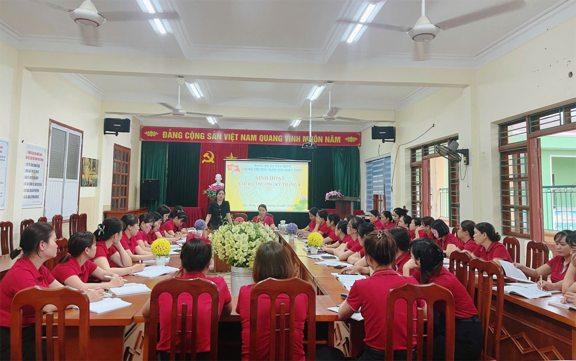 Chiều ngày 03 tháng 4 năm 2026, Chi bộ Trường Mầm non Kiến Thiết tổ chức sinh hoạt thường kỳ nhằm đánh giá kết quả thực hiện nhiệm vụ tháng 3 và triển khai phương hướng, nhiệm vụ trọng tâm tháng 4. Về dự và chỉ đạo buổi sinh hoạt có đồng chí: